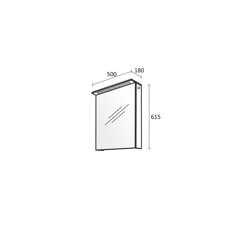 Дизайнът с плавно затваряне и хром-никелови панти осигурява дълготрайна употреба и удобство. Два стъклени рафта предоставят достатъчно място за вашите козметични принадлежности и аксесоари. С размери 500 / 615 / 180 мм, този шкаф е компактен, но функционален, идеален за всяка баня.