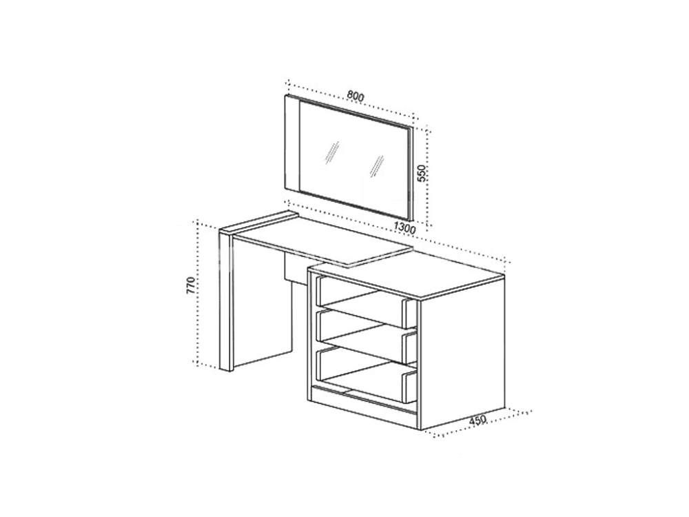 С размери 130/45/77 см, тя е стилен и функционален вариант за практичен дом, предоставяйки ви удобна секция за грим и подготовка. Допълнете я с табуретка Арте за пълноценен уют и комфорт. Изберете мебели онлайн с доставка до вашата врата и се насладете на достъпни решения, които правят дома ви по-красив и удобен.