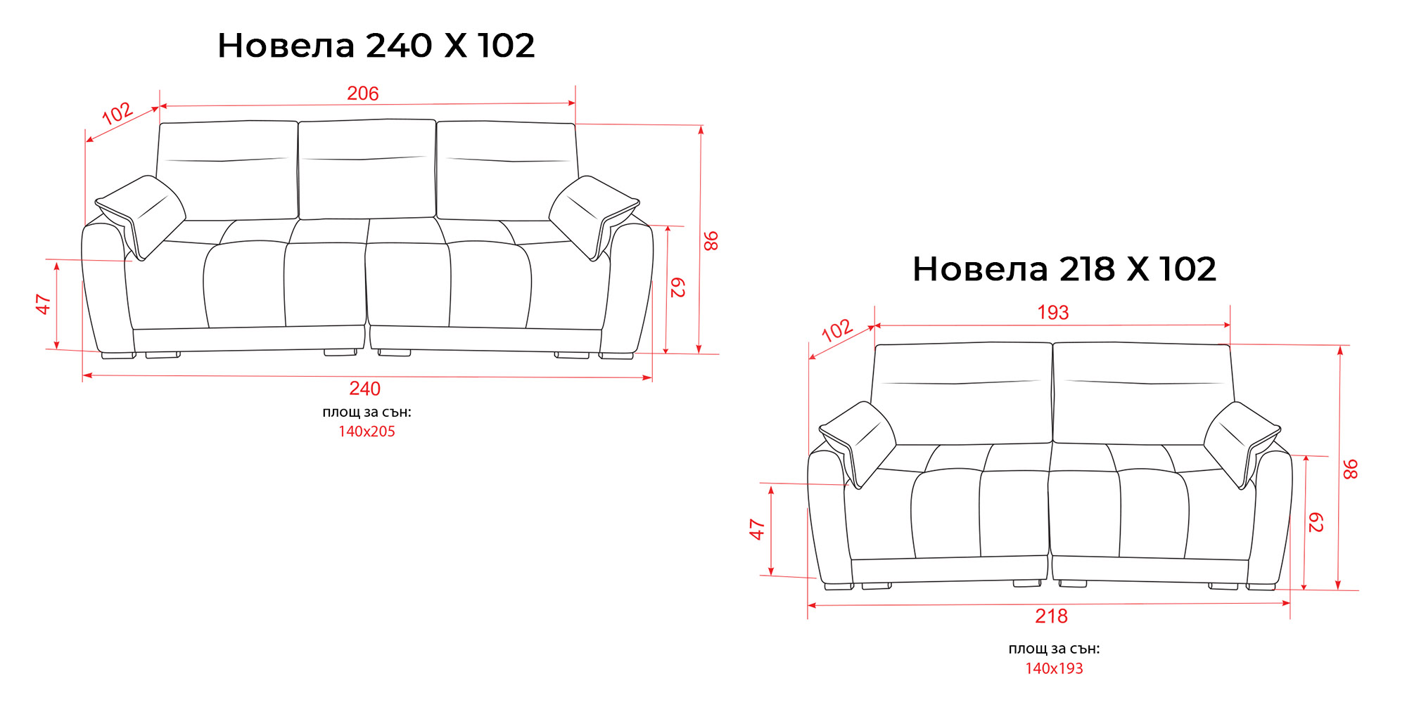Елегантният диван НОВЕЛА се предлага в два практични размера, с възможност за избор между разнообразие от материи и цветови решения от внимателно подбран каталог. Механизмът за сън е вдъхновен от висококачествени матрачни технологии, гарантиращи комфорт и надеждност при ежедневна употреба. Към стабилната и устойчива конструкция е добавен слой от дишащи, издръжливи и приятно меки материали, които осигуряват оптимален баланс между плътност и удобство. Седящата позиция е сигурна и ергономична, а в разгънато състояние повърхността е равна и подходяща за пълноценен и здравословен сън. Това е повече от стандартен диван – това е функционално решение за модерния дом. Изчистената линия на модела е омекотена от декоративни възглавници с елегантна форма, които придават завършен и уютен вид. Съчетавайки съвременен дизайн с лека индустриална нотка, диванът впечатлява с модулната си конструкция. Външно семпъл, той крие система от свързани елементи, които се сглобяват лесно и без нужда от инструменти. Допълнителното място за съхранение допринася за практичността, а високата и удобна седяща позиция го превръща в отличен избор за всеки дом.