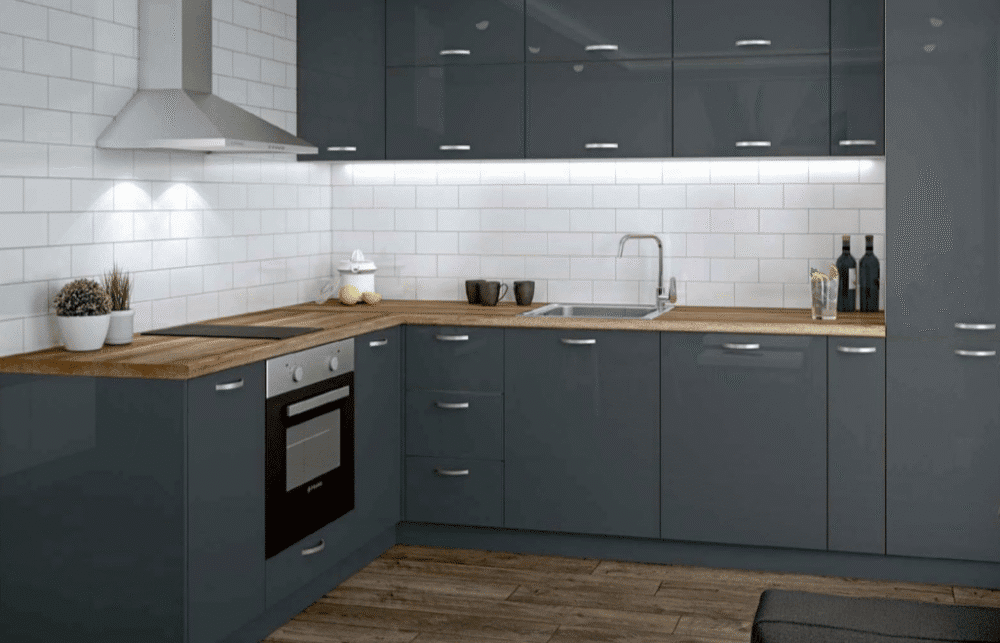 Създайте уют и стил в дома си с ъгловата кухня Глосмакс 202/300. С елегантните си врати от МДФ гланц, тя не само че придава модерен вид, но и предлага практично решение за всeки дом. Плавно затваряне на вратите и чекмеджетата осигурява комфорт и удобство при използване.