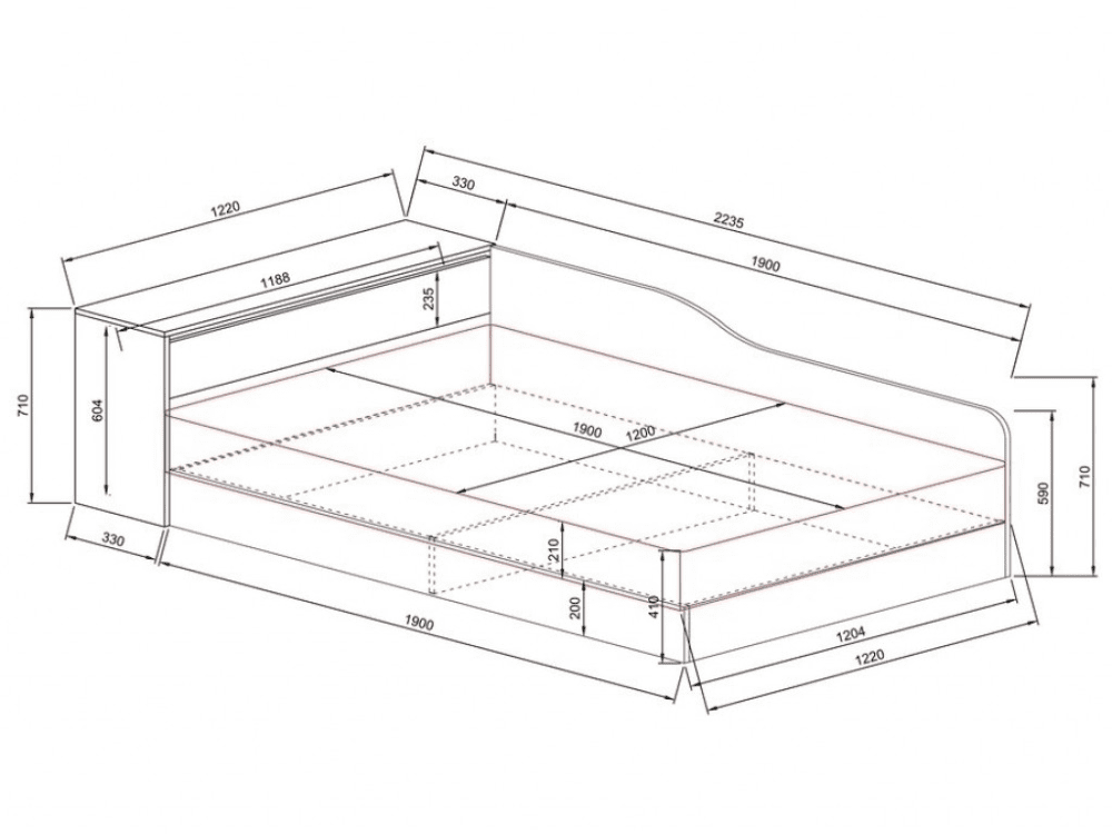 • Размери ш/в/д: 223,5/71/122 см.